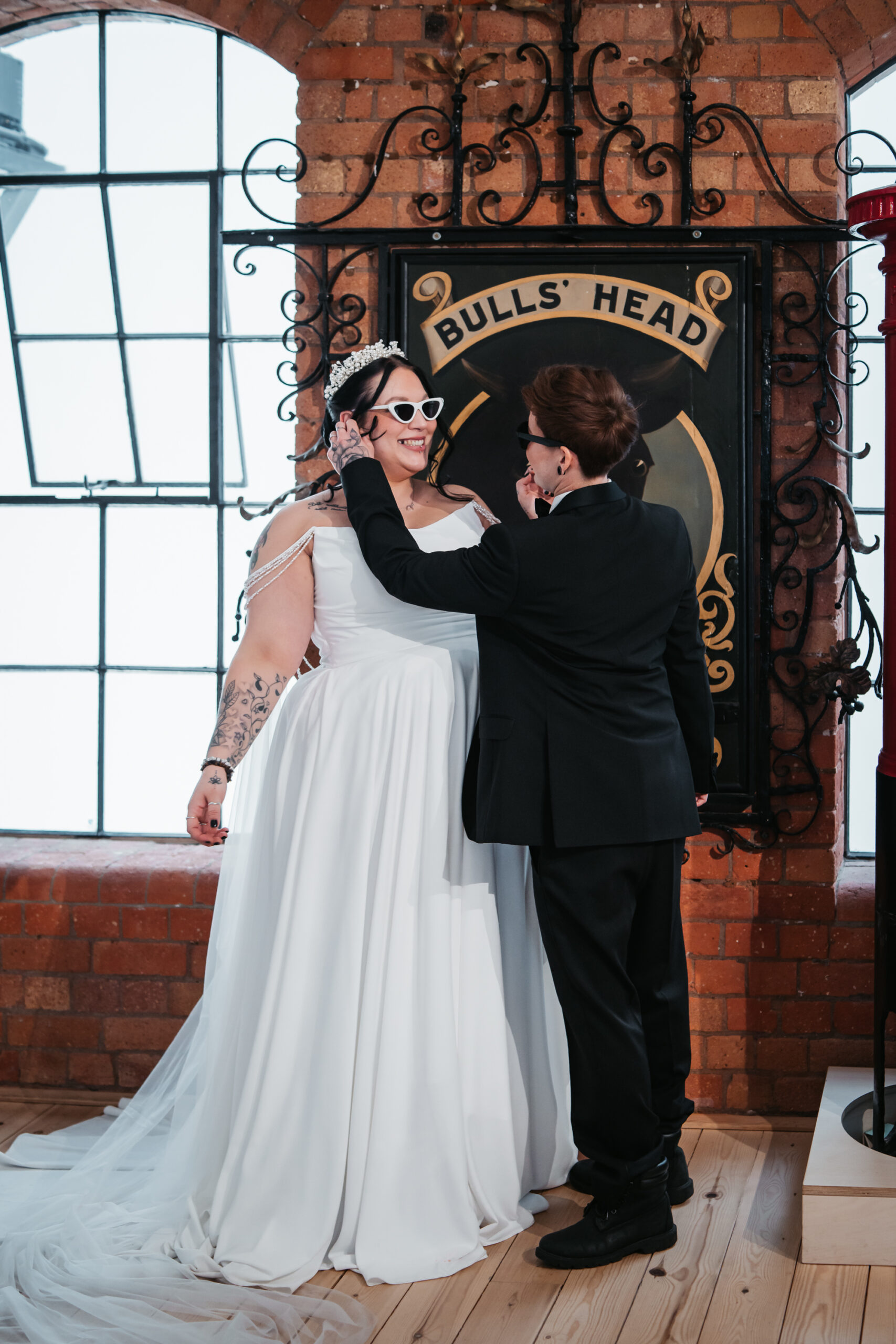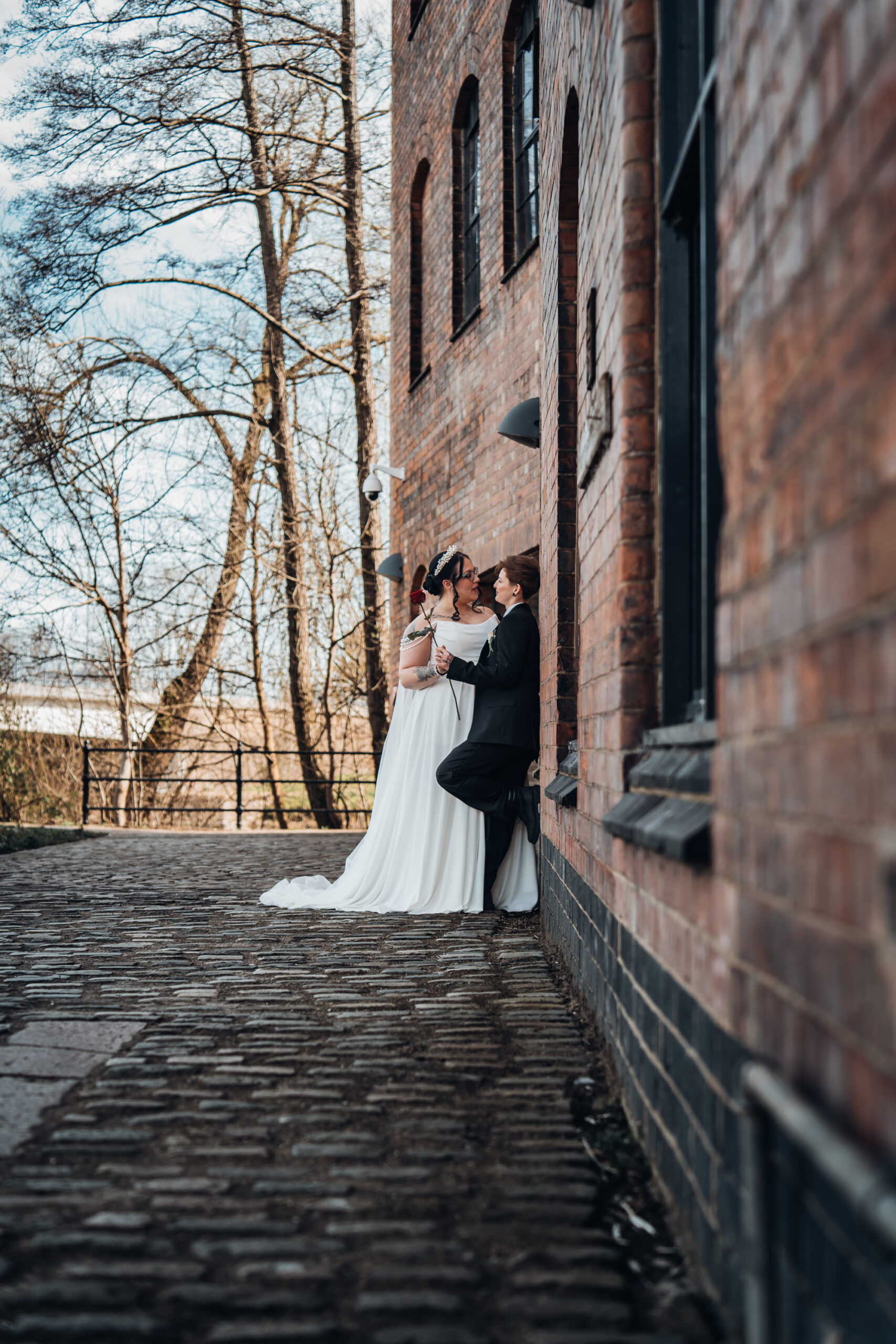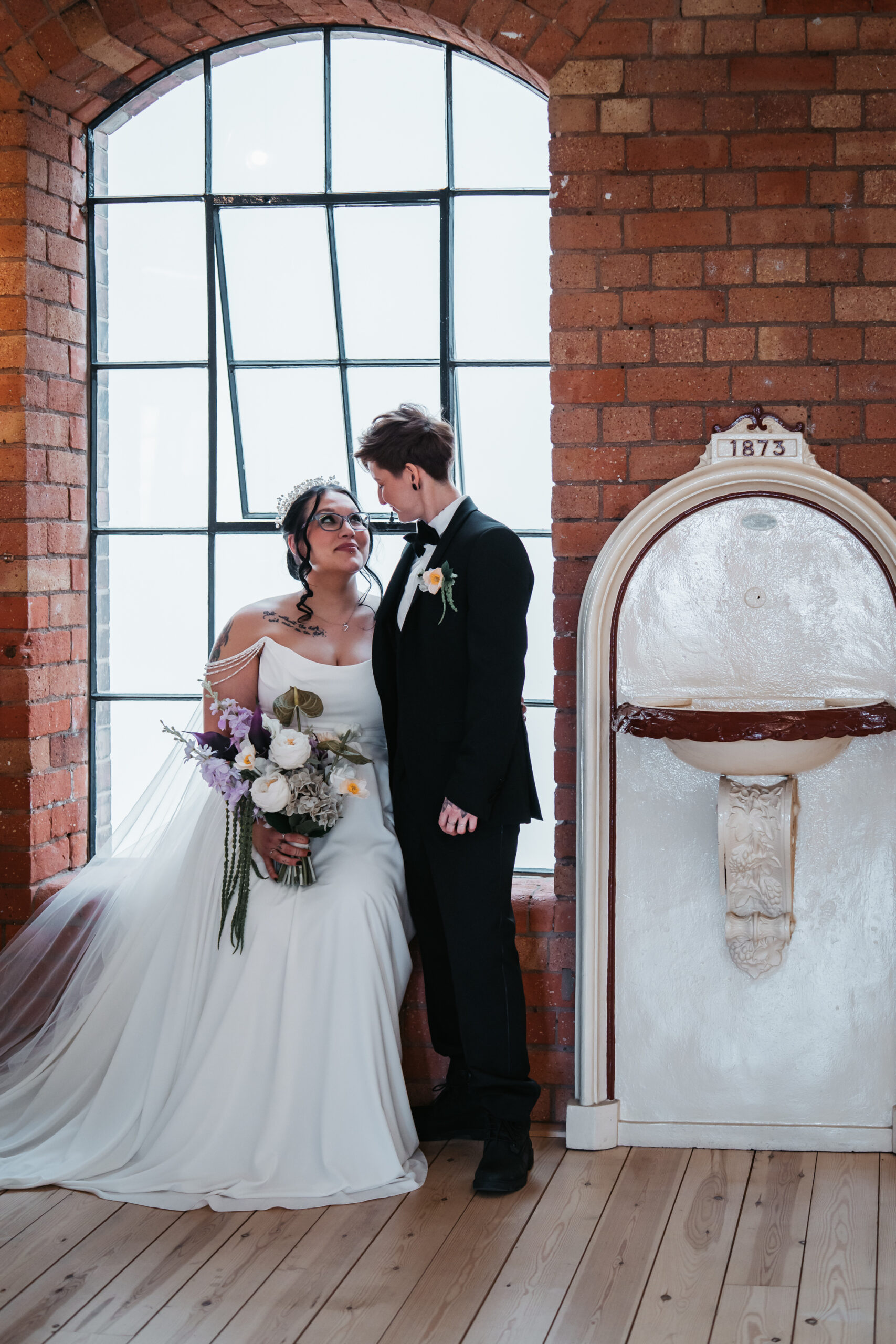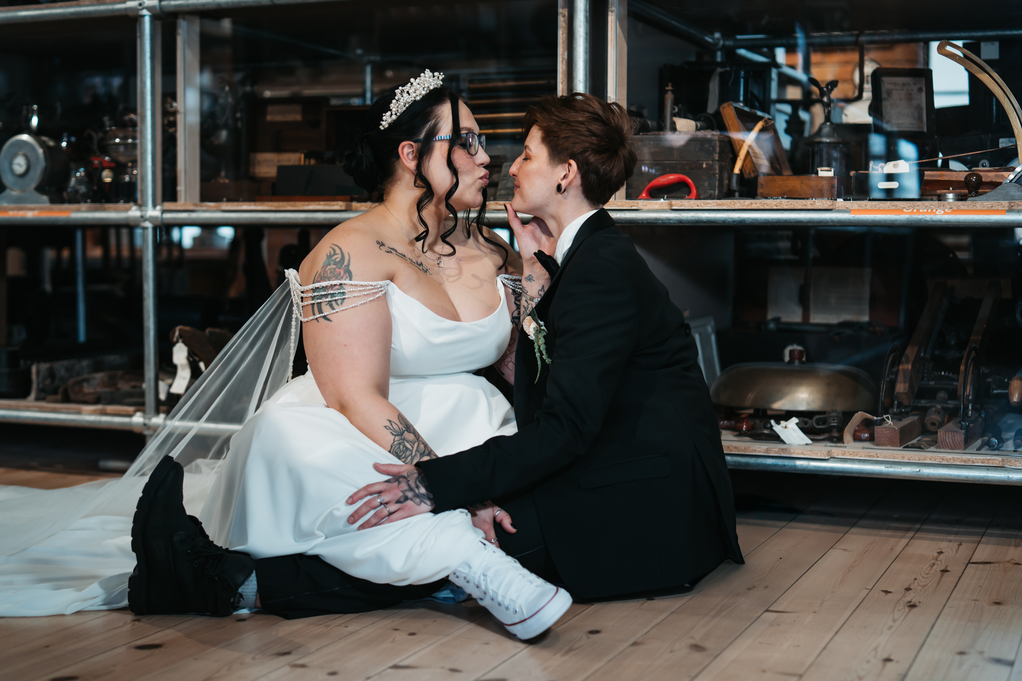 What really made this shoot was the fact that our models were just so into each other. Their chemistry shines through and certainly made my job easy as a photographer. Full of laughs, smiles, fun and intimacy, we imagined that Sammy and Liv had escaped their party, maybe a bit tipsy for some alone time on their wedding day.