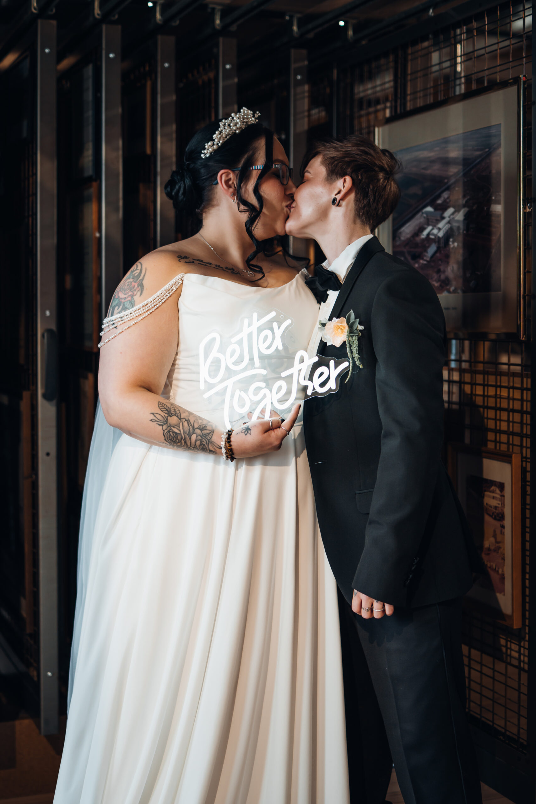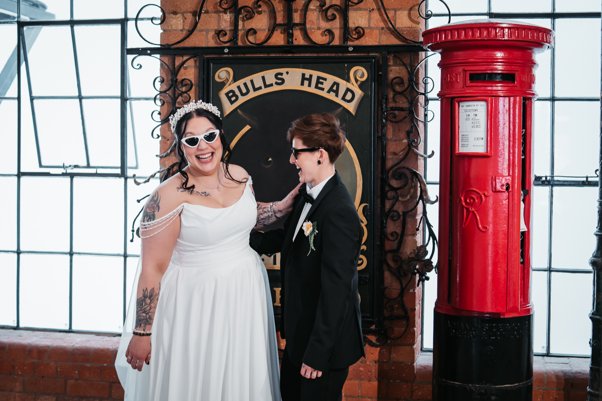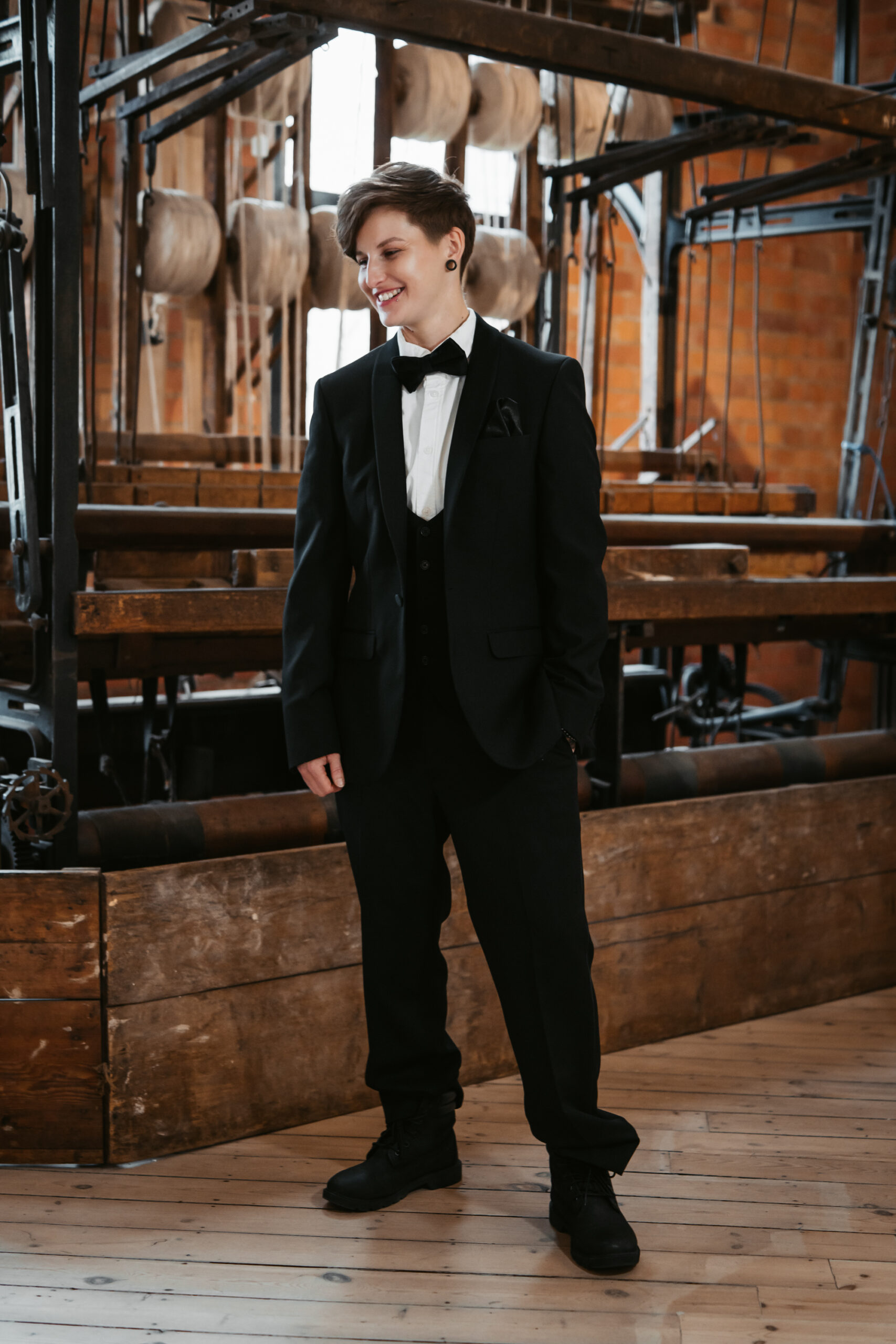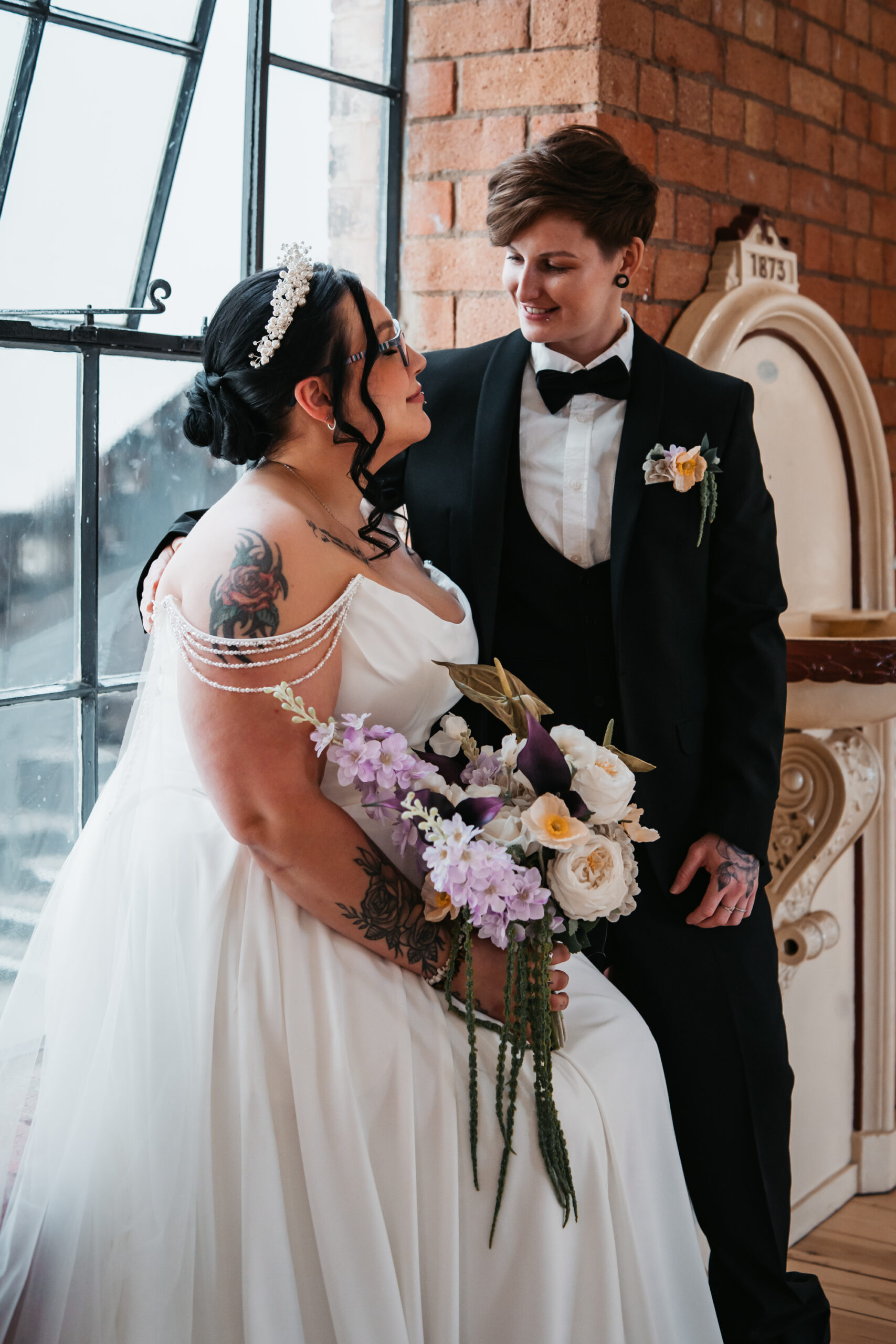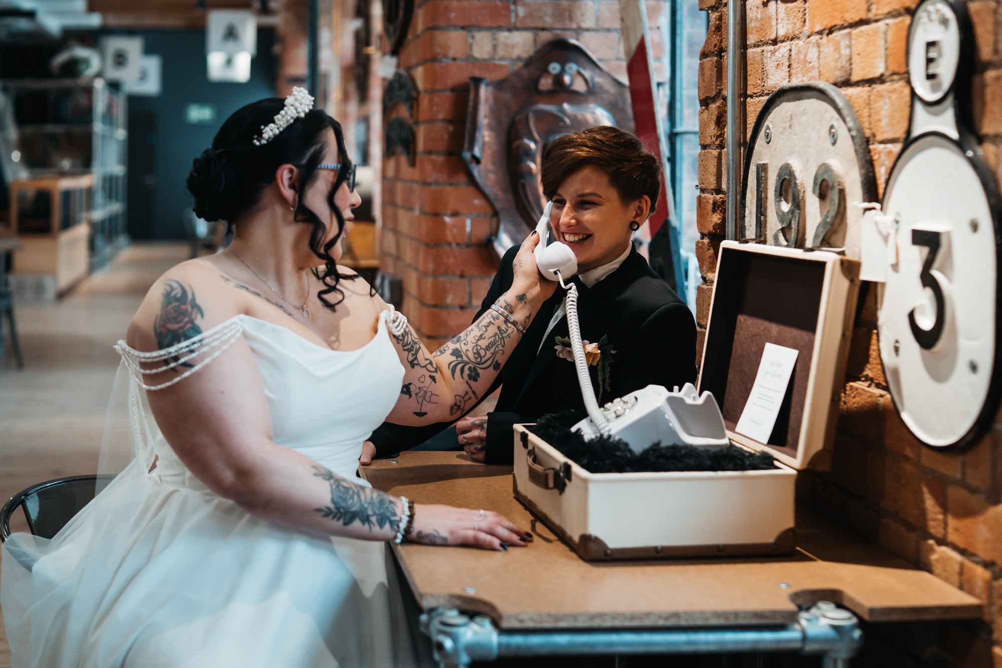 What really made this shoot was the fact that our models were just so into each other. Their chemistry shines through and certainly made my job easy as a photographer. Full of laughs, smiles, fun and intimacy, we imagined that Sammy and Liv had escaped their party, maybe a bit tipsy for some alone time on their wedding day.