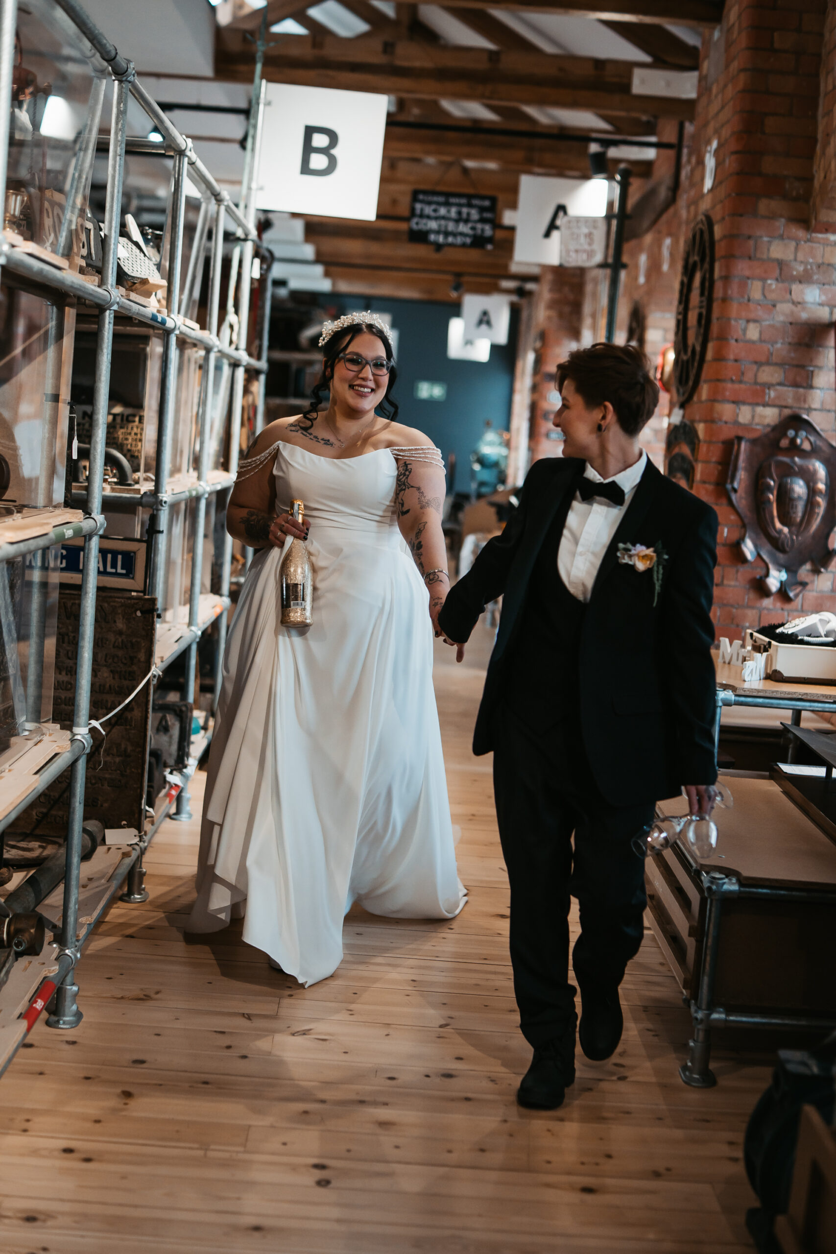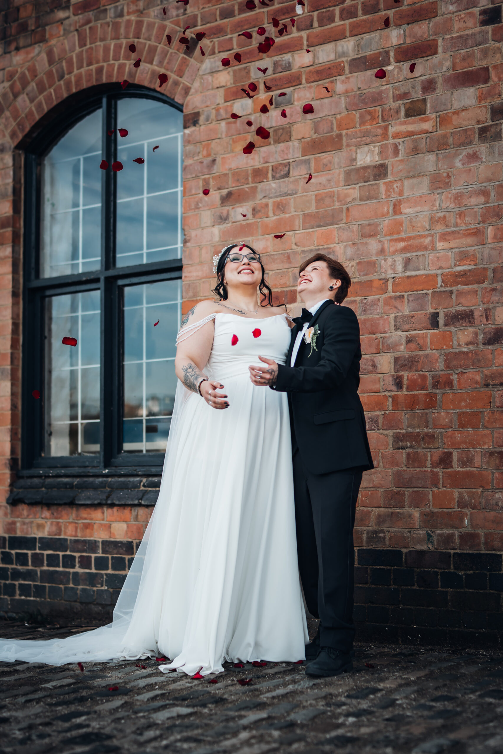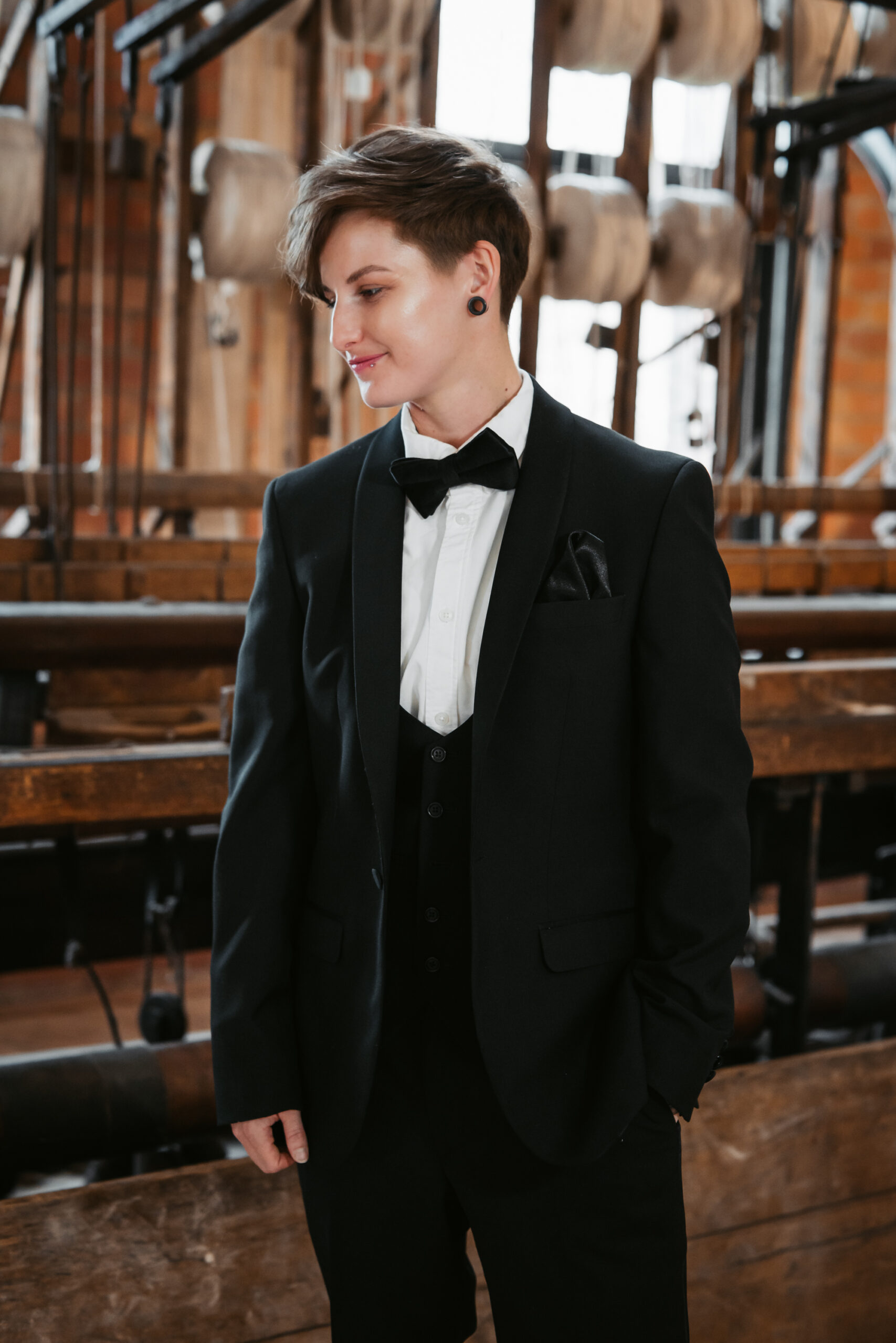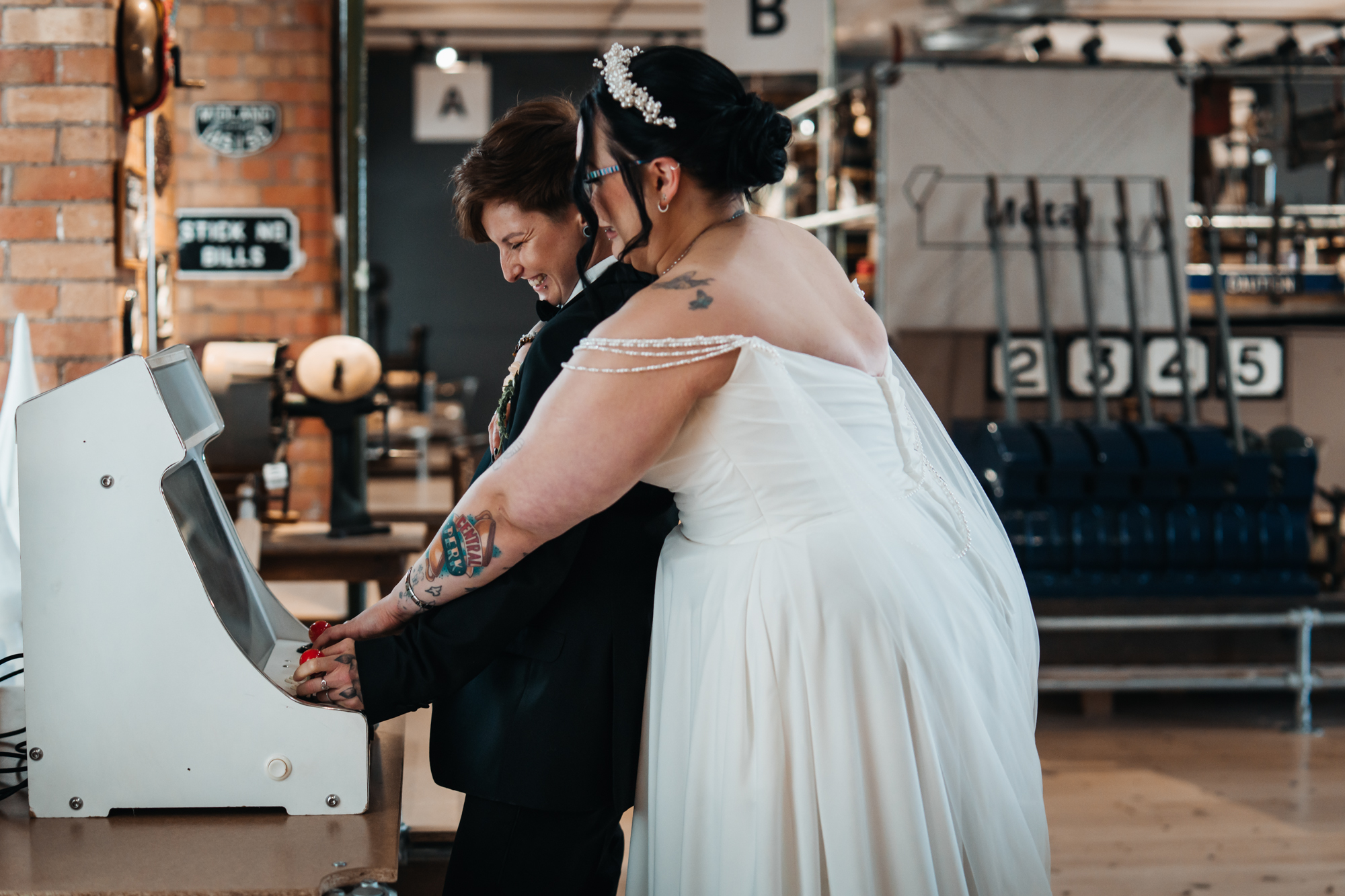 What really made this shoot was the fact that our models were just so into each other. Their chemistry shines through and certainly made my job easy as a photographer. Full of laughs, smiles, fun and intimacy, we imagined that Sammy and Liv had escaped their party, maybe a bit tipsy for some alone time on their wedding day.