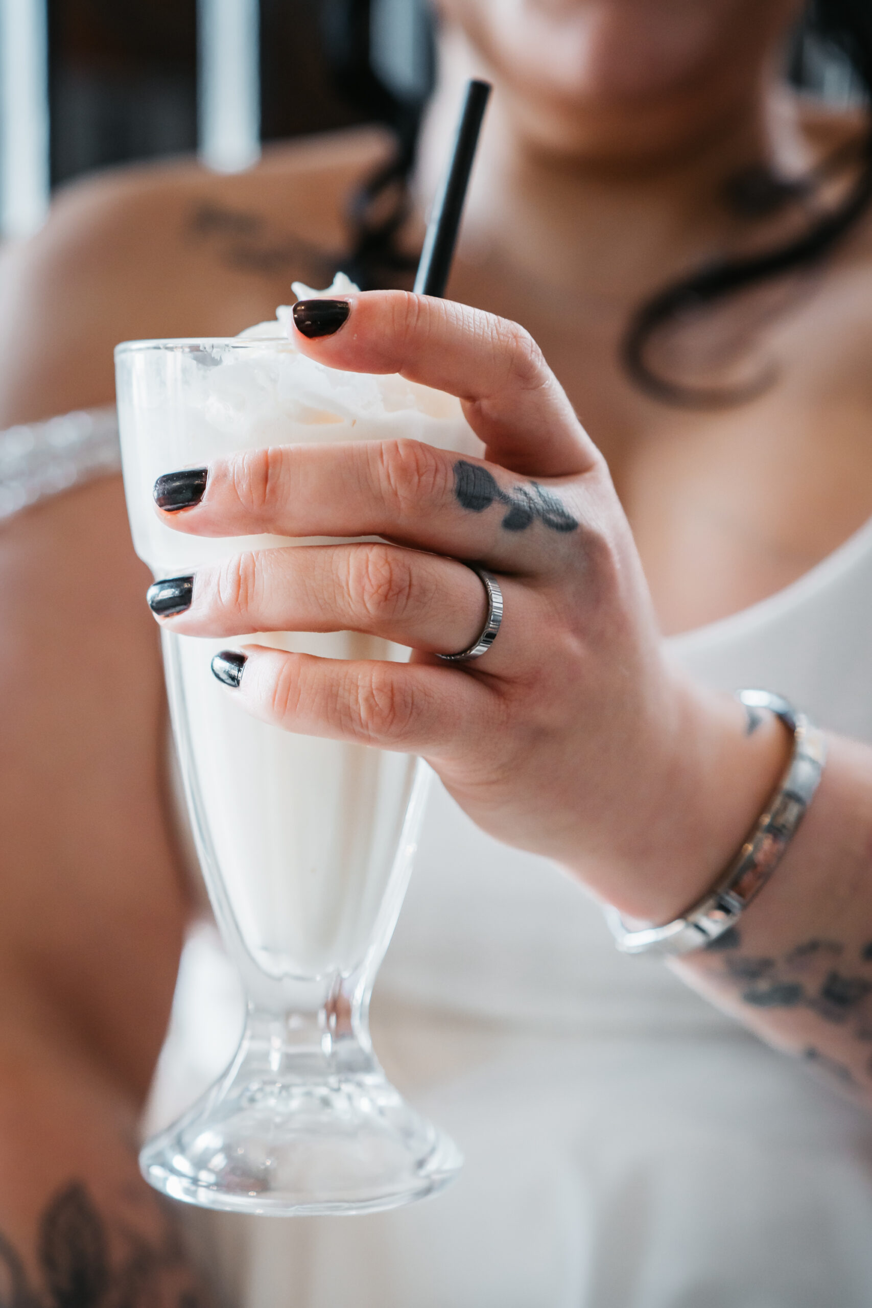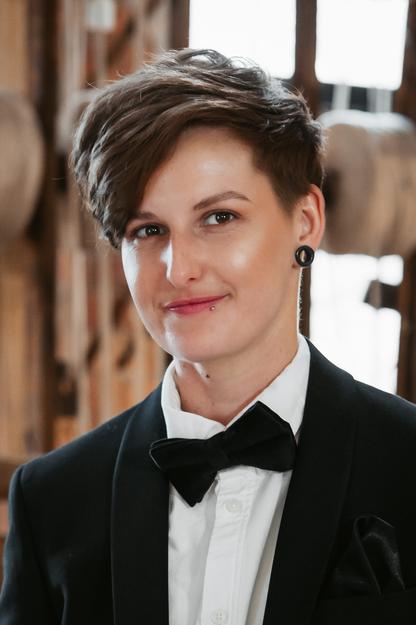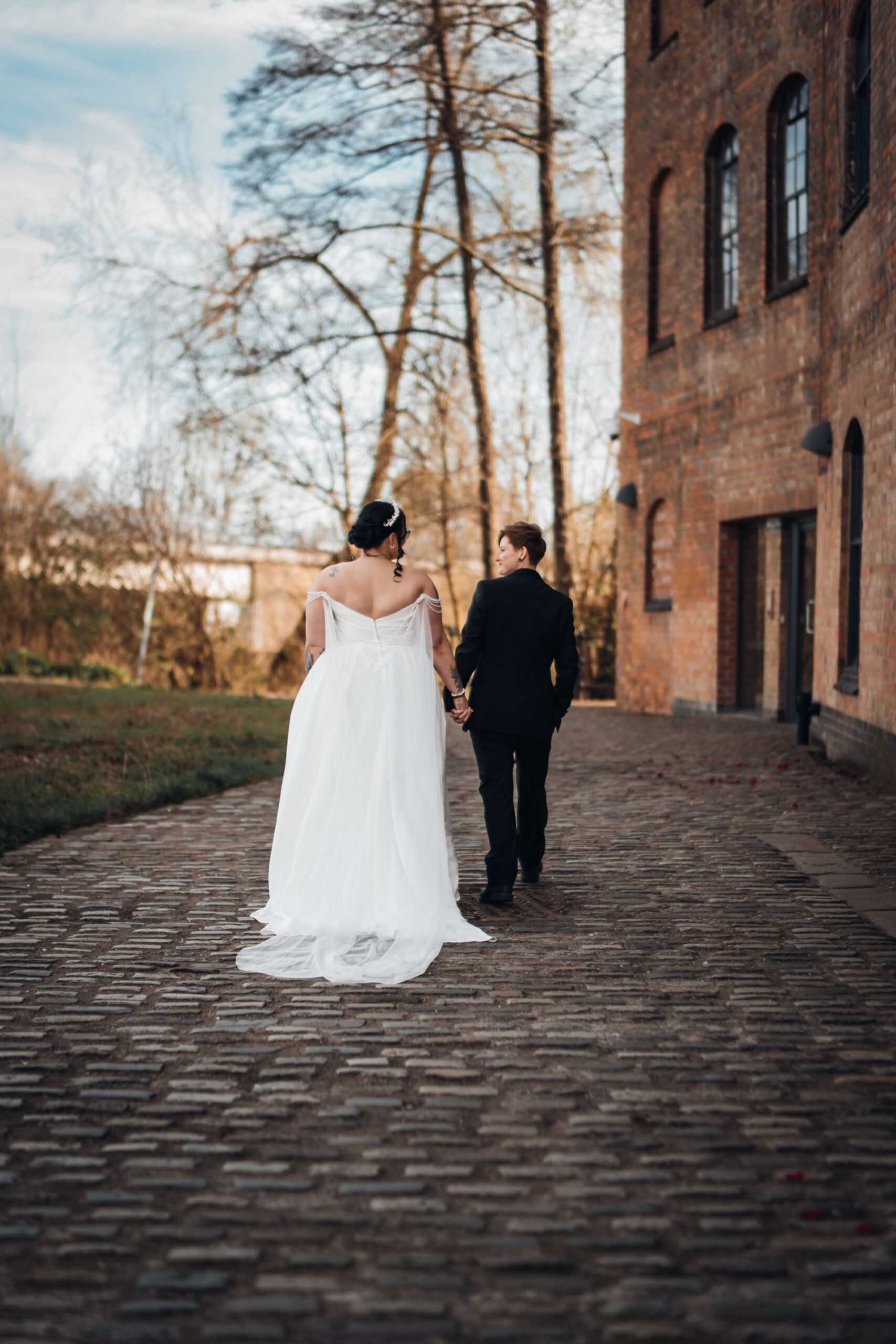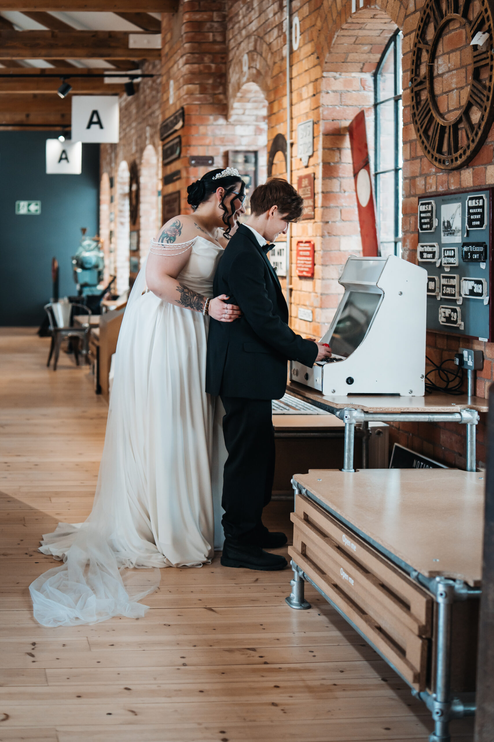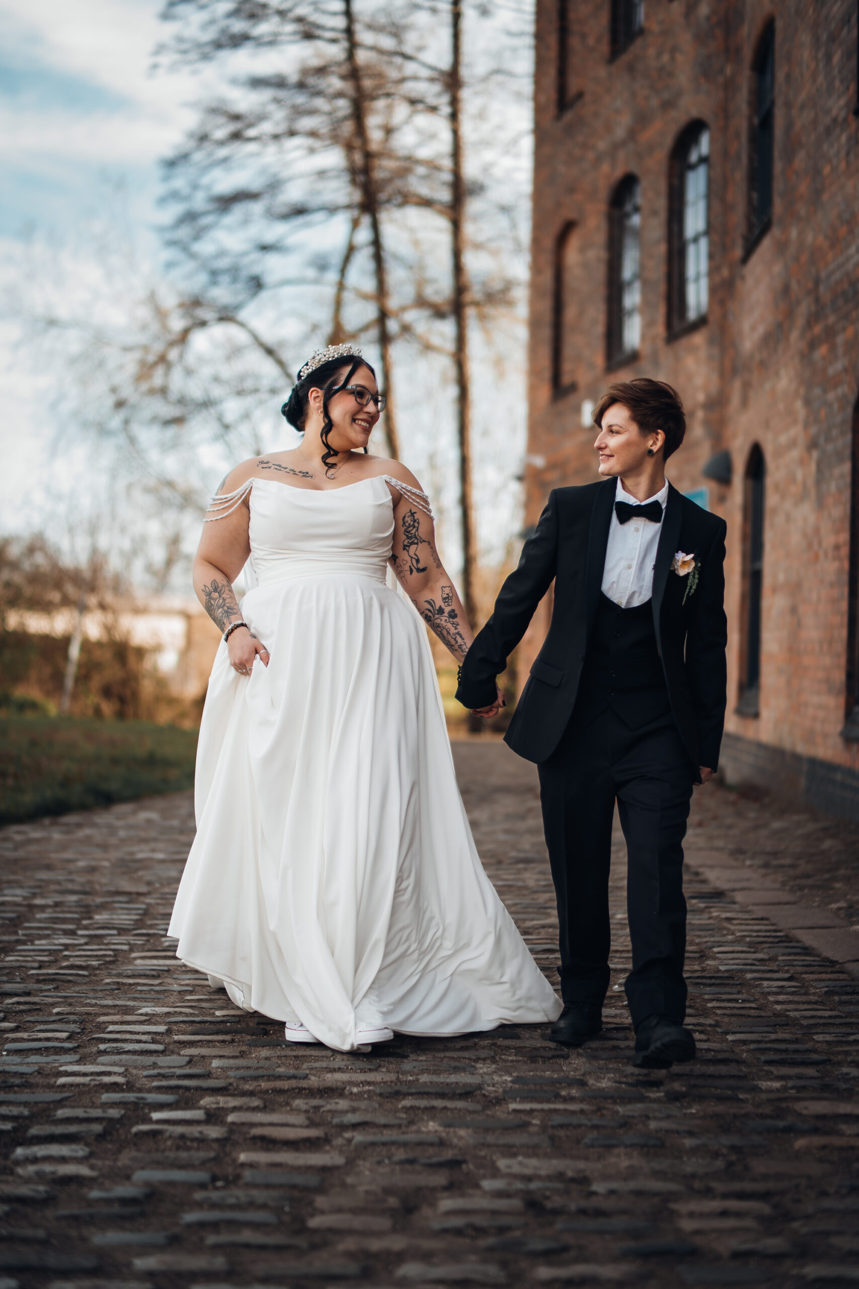 What really made this shoot was the fact that our models were just so into each other. Their chemistry shines through and certainly made my job easy as a photographer. Full of laughs, smiles, fun and intimacy, we imagined that Sammy and Liv had escaped their party, maybe a bit tipsy for some alone time on their wedding day.