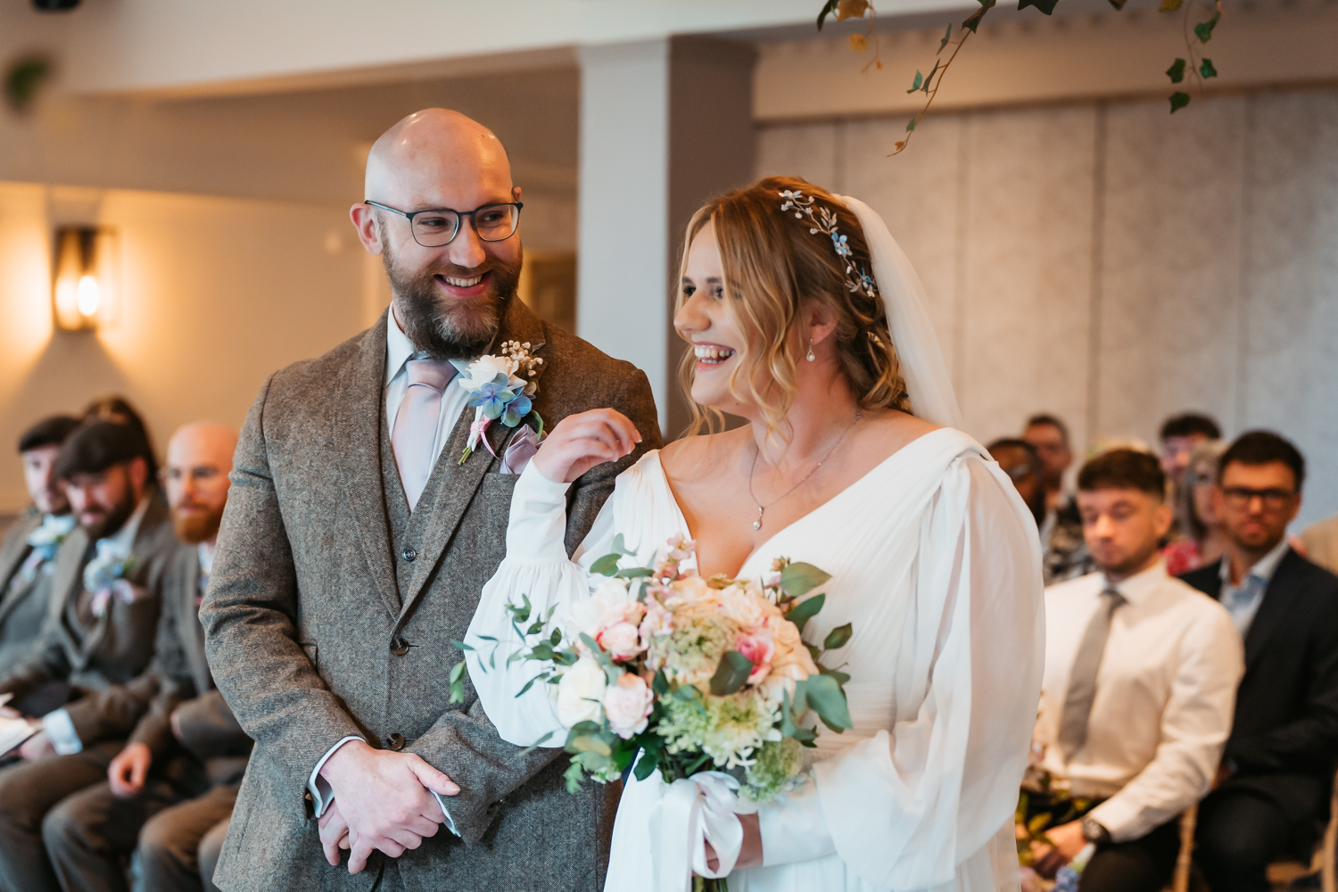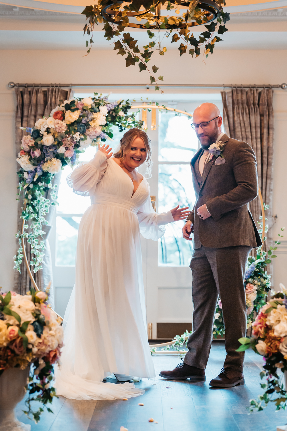 I’ve only shot one wedding here so far, but I had a great time and as it’s less than 10 minutes from home I am definitely hoping for more! Natasha and David had a Bridgerton themed wedding which worked so well with the large ceremony room with it’s arched windows overlooking the gardens, and moulded ceilings and doorframes. The couple really went to town and with the help of Natasha’s mum made all the floral decor themselves, which, if you’re having a Bridgerton wedding is a lot!